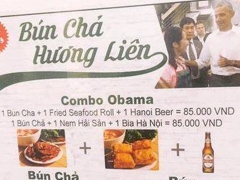 Sau đó, quán bún chả Hương Liên cũng sử dụng hình ảnh vị nguyên thủ quốc gia này in lên menu mới của quán. Menu được in song ngữ Anh – Việt và đứng đầu menu là combo Obama, gồm 1 bún chả, 1 nem hải sản, 1 chai bia Hà Nội - những món ông Obama đã dùng khi ăn ở quán này.
